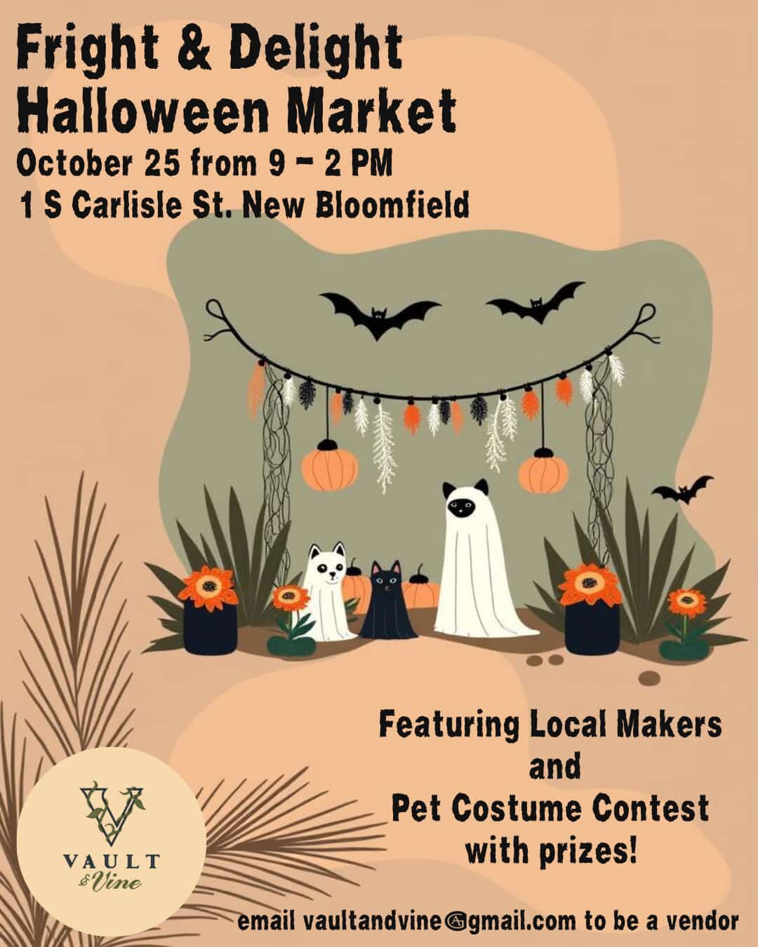 Join us for Vault + Vine's Fright & Delight Market! This year's theme is a Pet Costume Contest, so expect a festive, spooky time with makers and pets galore!